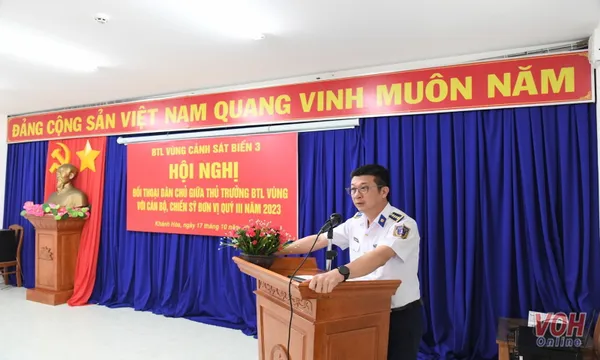 Trong hai ngày 16-17/10, Đoàn công tác Bộ Tư lệnh Vùng Cảnh sát biển 3 do Đại tá Nguyễn Minh Khánh, Phó Tư lệnh, kiêm Tham mưu trưởng Bộ Tư lệnh Vùng Cảnh sát biển 3 làm trưởng đoàn đã đến kiểm tra kết quả thực hiện nhiệm vụ xây dựng đơn vị vững mạnh toàn diện “mẫu mực, tiêu biểu” và đối thoại dân chủ với cán bộ, chiến sỹ Hải đoàn 32.