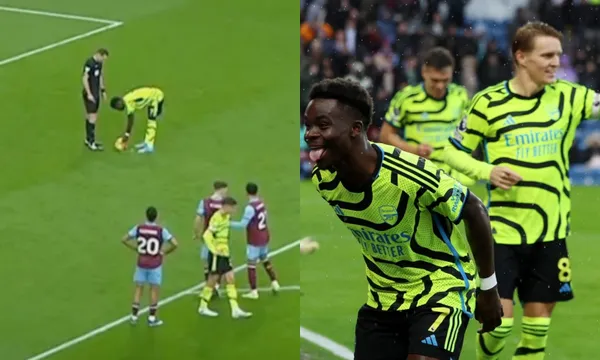 Những tưởng Odegaard sẽ chắc chắn thực hiện quả sút penalty thì khi trọng tài Jarred Gillett yêu cầu chờ hiệu lệnh còi, thủ quân Arsenal bỗng quay lưng bỏ đi. Saka bước lên thay thế trong sự ngỡ ngàng của tất cả. Ngay cả nhà đài cũng bị đánh lừa và đã chiếu hình ảnh thống kê 5 cú sút penalty gần nhất của Odegaard.