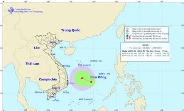 Vị trí áp thấp biển Đông. Hình: nchmf