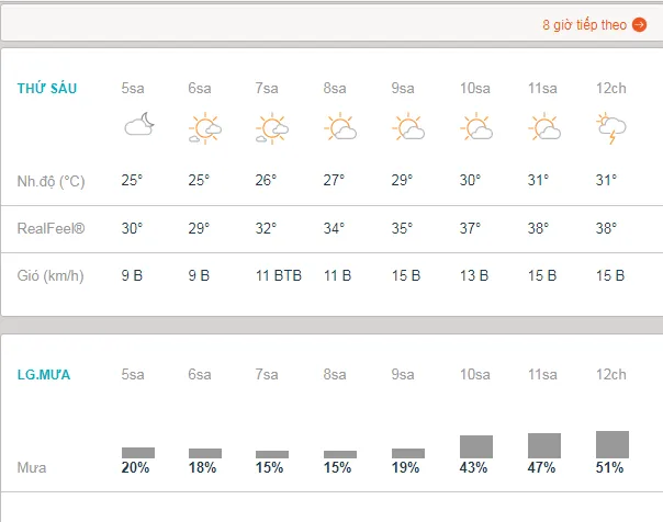Dự báo thời tiết TPHCM buổi sáng 20/10 theo khung giờ (Ảnh chụp màn hình Accuweather)