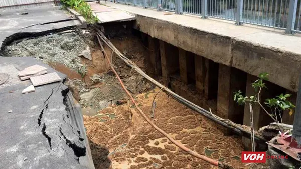 Đây là “hố tử thần” lớn nhất từ trước đến nay tại TPHCM. Nếu ngày hôm qua (04/8) chỉ lún sâu 0,7m thì nay đã lún 5m, dài 8m, có thể đưa lọt một chiếc xe buýt. Cùng với đó, ở độ sâu 5m so với mặt đường có một cống thoát nước của hệ thống cống Nhiêu Lộc – Thị Nghè nối qua đường Hoàng Sa.