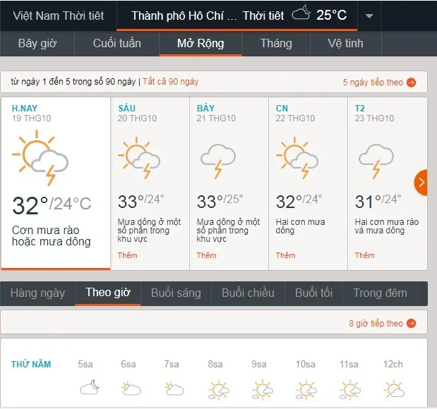 Dự báo thời tiết TPHCM của trang Accuweather (Ảnh: Chụp màn hình)