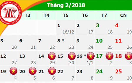 Theo đó, Nghỉ Tết Âm lịch từ thứ Tư, ngày 14/2/2018 (ngày 29 tháng chạp năm Đinh Dậu) đến hết thứ Ba, ngày 20/2/2018;