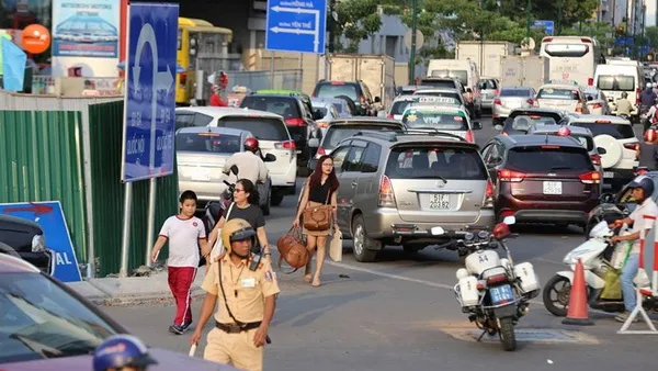 Chiều 28/4, bắt đầu vào kỳ nghỉ lễ dài 4 ngày nên nhu cầu đi lại tăng cao, tại cửa ngõ vào hướng sân bay Tân Sơn Nhất, hàng ngàn phương tiện nối đuôi, chen lấn nhau khiến tình trạng giao thông ở khu vực này bị ùn tắc nặng.