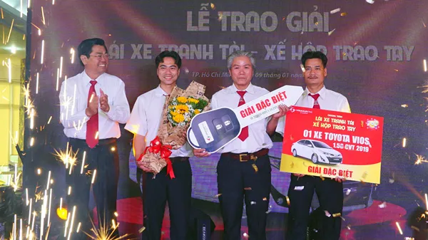 Chiều 9/1, lái xe Lê Văn Nam, Vinasun Taxi đã được trao thưởng chiếc xe Toyota Vios 1.5G CVT 2019 trị giá 540 triệu đồng, giải đặc biệt của chương trình “Lái xe tranh tài - Xế hộp trao tay” đợt 1 mà anh may mắn trúng thưởng.