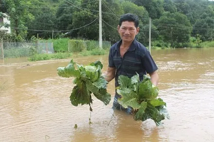 Tại Lâm Đồng, nước từ đầu nguồn dồn về cùng với việc Thủy điện Đa Nhim (huyện Đơn Dương, Lâm Đồng) xả lũ với lưu lượng 700m3/giây vào lúc 6h30 sáng nay khiến hàng ngàn ha rau màu, nhà cửa của người dân huyện Đơn Dương bị ngập nước...