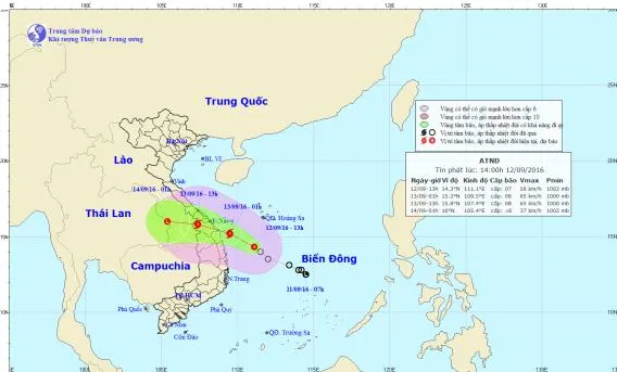 Theo Trung tâm dự báo khí tượng thủy văn Trung ương, hồi 14 giờ ngày 12/9, vị trí tâm áp thấp nhiệt đới ở vào khoảng 14,3 độ Vĩ Bắc; 111,1 độ Kinh Đông, cách bờ biển các tỉnh Quảng Nam-Bình Định khoảng 210km về phía Đông. Sức gió mạnh nhất ở vùng gần tâm áp thấp nhiệt đới mạnh cấp 7 (50-60km/giờ), giật cấp 8-9.
