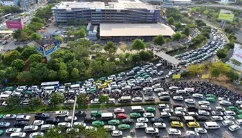 Đường ra vào nhà ga quốc tế, ôtô và xe máy bị chết dí hàng giờ.
