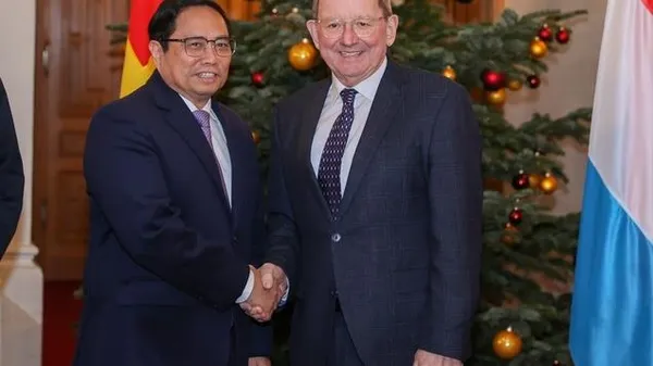 Thủ tướng Phạm Minh Chính bày tỏ vui mừng đến thăm Luxembourg trong bối cảnh hai nước đang hướng tới kỷ niệm 50 năm thiết lập quan hệ ngoại giao (1973-2023), và cảm ơn sự đón tiếp trọng thị và chu đáo của lãnh đạo Luxembourg dành cho Đoàn đại biểu cấp cao Chính phủ Việt Nam.