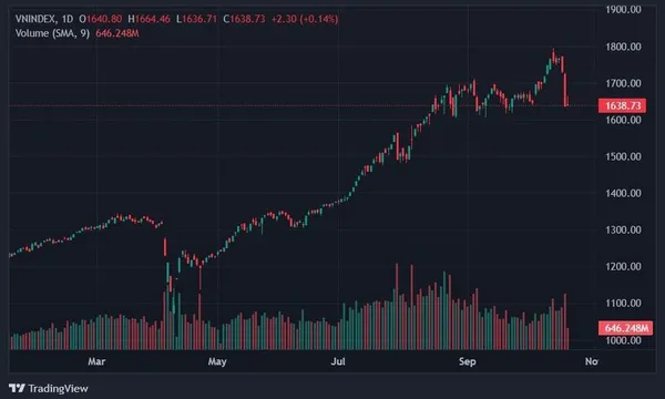 Đến 10h30, VN-Index tăng 20,33 điểm (+1,2%) lên 1.656,76 điểm; HNX-Index tăng 1,98 điểm (+0,8%), trong khi UPCoM-Index giảm 0,86 điểm (-0,8%) xuống 109,45 điểm. Thanh khoản toàn thị trường đạt 16.700 tỷ đồng chỉ sau một giờ giao dịch, tăng hơn 60% so với cùng thời điểm phiên trước.