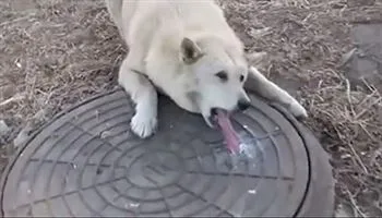 Vladivostok ở Nga vốn là một xứ nổi tiếng về cái lạnh. Nhiệt độ ban ngày khoảng -15 độ C. Một con chó đã được phát hiện đang bất lực khi cố gắng giựt lưỡi của nó ra khỏi một nắp cống vì lưỡi đã bị đóng băng dính vào.