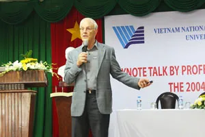| GS. David Gross nói chuyện tại ĐH Khoa học tự nhiên TP.HCM. (ảnh: vnuhcm) |