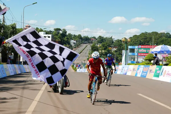 10g13: Tay đua Lê Văn Duẩn (VUS TPHCM 1) tung nước rút thần tốc, qua mặt tốp đông để cán đích đầu tiên. Về nhì là Nguyễn Vũ Linh (Dược Domesco Đồng Tháp 1) và ba là áo vàng Nguyễn Trường Tài (VUS TPHCM 1).