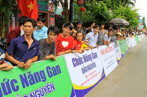 Khán giả đón đoàn đua tại đích đến tại huyện Hóc Môn trong Cuộc đua NNKN lần thứ 17 năm 2014. (ảnh: K.Huân)