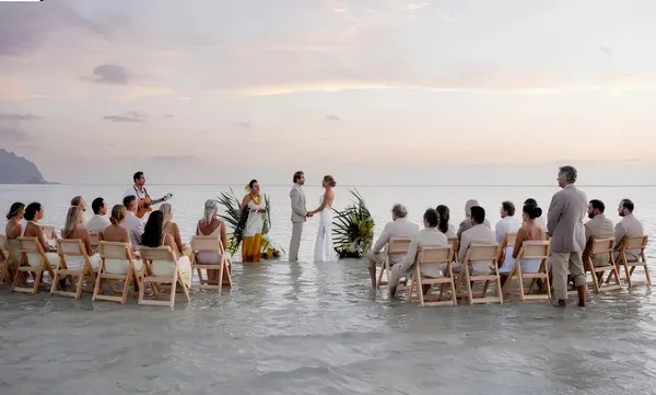 Cặp đôi hài hước cho biết họ muốn “thử xem gia đình và bạn bè yêu mình đến mức nào” khi yêu cầu tất cả dậy từ sáng sớm. Sinh ra và lớn lên tại Oahu, Leandra và Daniel cho hay họ biết thủy triều xuống thấp vào bình minh, để lộ bãi cát giữa biển.
