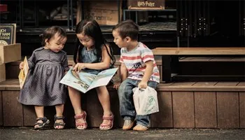 Trẻ em thích thú xem sách tại đường sách Nguyễn Văn Bình.