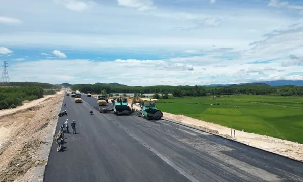 Sáng 26/6, trên công trường cao tốc Vạn Ninh - Cam Lộ, không khí thi công diễn ra hết sức khẩn trương, đặc biệt tại các nút giao trọng điểm.