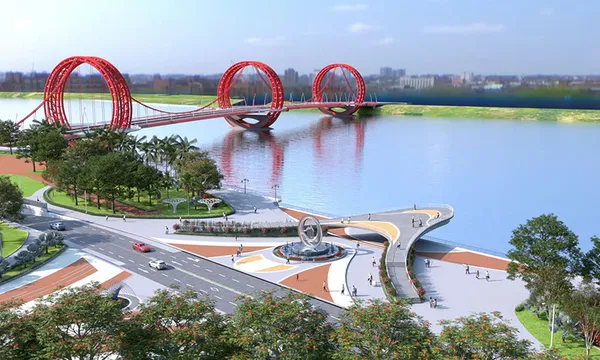 Cầu có thiết kế với 3 vòng tròn thép