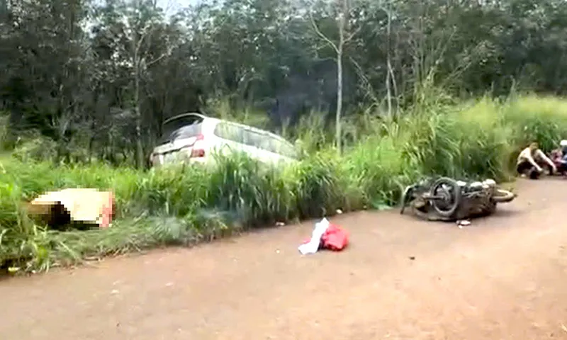 Cú va chạm mạnh khiến bà Y tử vong tại chỗ. Tại hiện trường, chiếc ô tô lao vào bờ cỏ lề đườg xe máy nằm trên đường bị hư hỏng nặng.