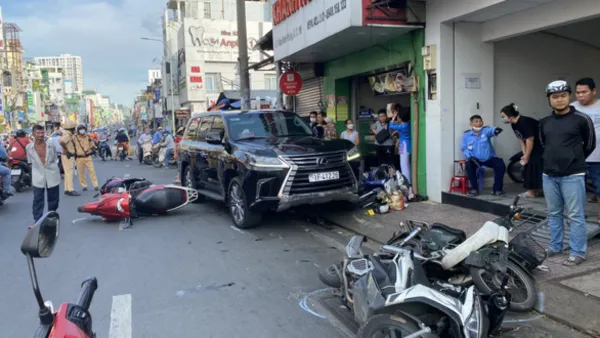 Xe 7 chỗ lao vào nhiều xe máy gần ngã tư Phú Nhuận 2