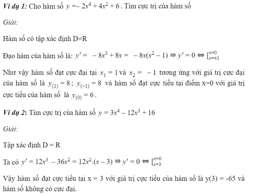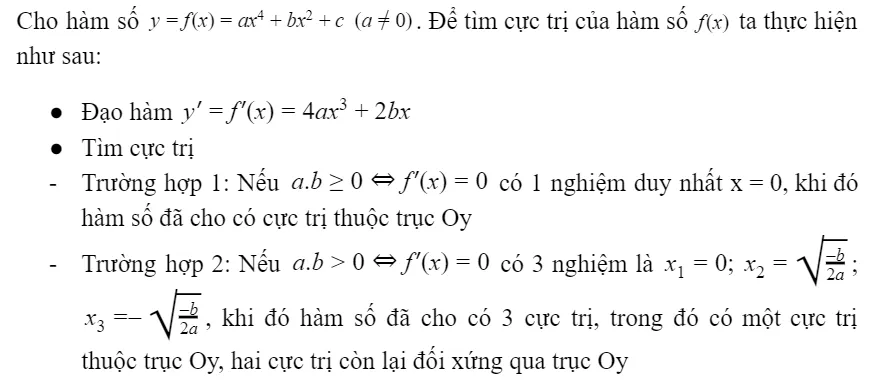 Dạng 4: Bài toán tìm cực trị hàm trùng phương