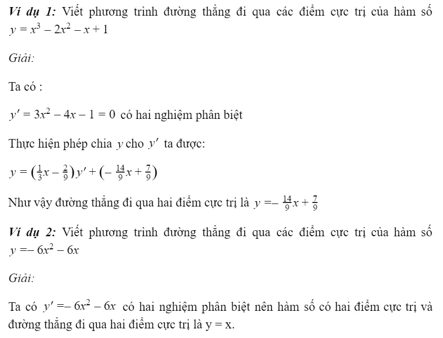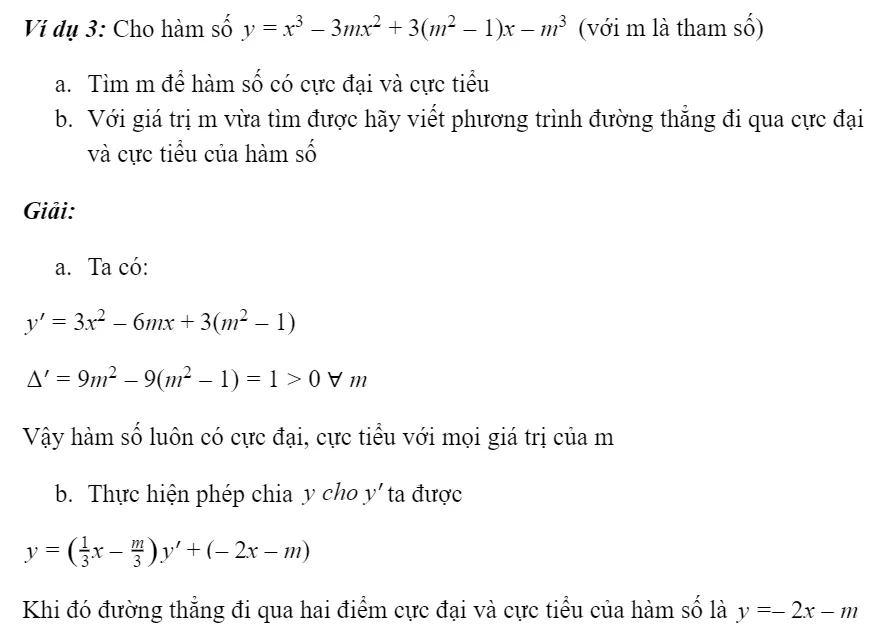 Dạng 2: Phương trình đường thẳng đi qua 2 điểm cực đại và cực tiểu