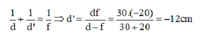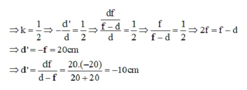Bài tập 2: Một thấu kính phân kì có tiêu cự f = -20cm. Vật sáng AB là một đoạn thẳng vuông góc với trục chính của thấu kính cho ảnh ảo cao bằng một nửa vật. Xác định vị trí vật và ảnh.