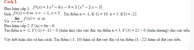 - Cách 2: Xét dấu f′′(xo) với xo là nghiệm của f’(x) dựa vào định lí 3 để kết luận.