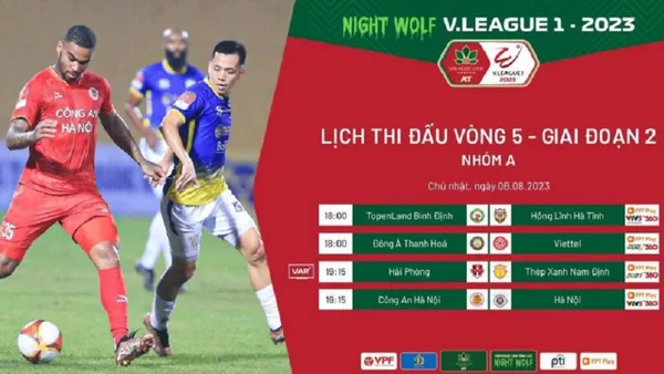 Cuộc đua vô địch V-League 2023 đang dần đi đến hồi kết, cuộc đua giờ đây chỉ còn lại là Hà Nội (32 điểm), Công An Hà Nội (31 điểm), Thanh Hóa (30 điểm) và Viettel (29 điểm). Tại vòng 5 giai đoạn 2, nhóm A sẽ thi đấu sớm vào ngày 6/8 sau đó đến lượt trận cuối tại nhóm B diễn ra ngày 11/8.