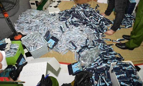Cảnh sát còn thu gần 15.000 thuốc lá điện tử được nhập lậu đang chờ bán ra thị trường.