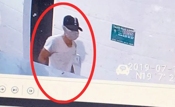 Khi gây án đối tượng mặc áo phông màu trắng, quần kaki sáng màu, đi giày thể thao màu đen, đế giày màu trắng, đội mũ lưỡi trai màu đen có sọc kẻ màu trắng ở giữa.