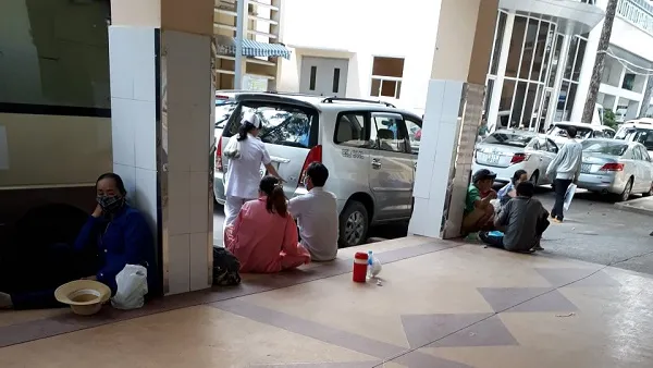 Thân nhân người bệnh nghỉ ngơi ở hành lang một bệnh viện. Hình minh họa: P Nguyệt