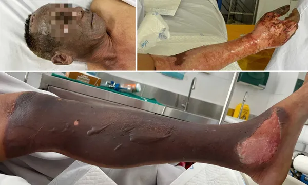 Bệnh nhân là ông V.Đ.N (61 tuổi, Hà Nội), được đưa vào viện tối 14/10 trong tình trạng bỏng nặng, chiếm khoảng 25 - 30% diện tích cơ thể, tập trung ở đầu, mặt, cổ, hai tay và hai chân cháy đen xém.