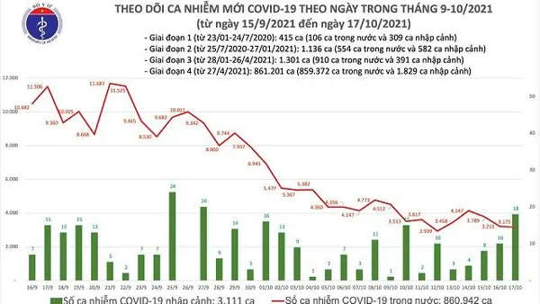 Trong ngày 16/10 có 1.254.443 liều vắc xin phòng COVID-19 được tiêm. Như vậy, tổng số liều vắc xin đã được tiêm là 61.919.937 liều, trong đó tiêm 1 mũi là 44.070.286 liều, tiêm mũi 2 là 17.849.651 liều.
