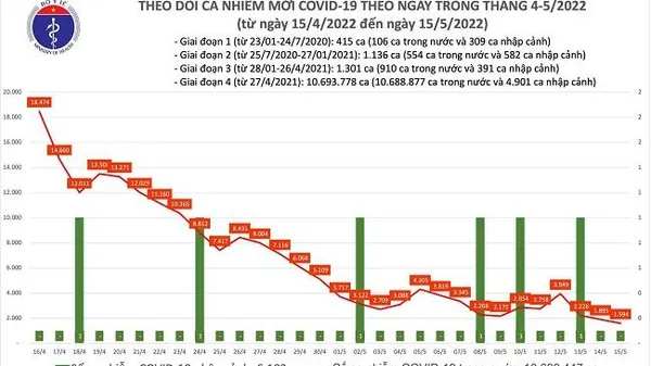 - Từ 17h30 ngày 14/5 đến 17h30 ngày 15/5 ghi nhận 0 ca tử vong.