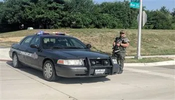 Cảnh sát Mỹ gác bên ngoài trường tiểu học Sunrise Point. (Nguồn: mirror.co.uk)