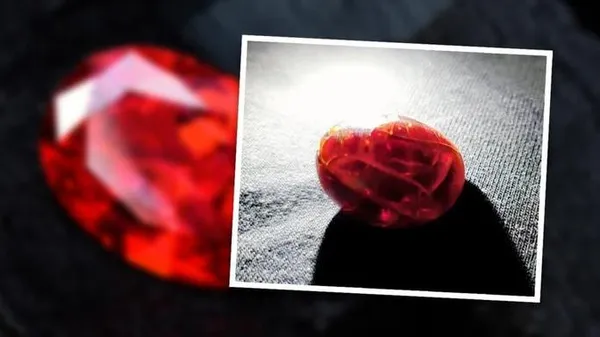 Khi để quả trứng dưới ánh sáng, quả trứng chuyển sang màu đỏ máu, để lộ nhiều vết nứt mỏng manh từ bên trong. Vì quá đẹp, nên cô Phó đã cất giữ cẩn thận trong một chiếc hộp trang sức. Bẵng đi một thời gian tới tận gần đây, mẹ cô đã phát hiện ra chiếc hộp này.