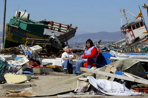 Đống đổ nát sau trận động đất tại Chile - Ảnh: Reuters