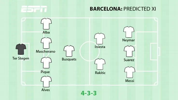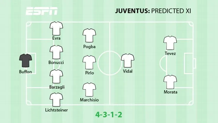 Trước thềm trận đấu trên, trang thể thao ESPN giới thiệu đội hình xuất phát và sơ đồ chiến thuật dự kiến của 2 đội như sau: