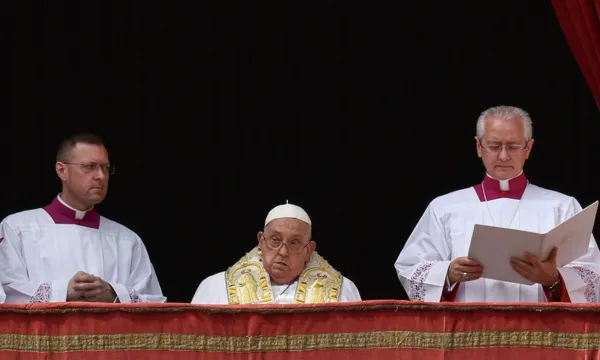 Từ ban công, Giáo hoàng gửi thông điệp truyền thống Urbi et Orbi (Gửi đến thành Rome và toàn thế giới) do một cộng sự đọc thay. Thông điệp mang thông điệp mạnh mẽ về hòa bình, đặc biệt là lời kêu gọi chấm dứt xung đột tại Dải Gaza.