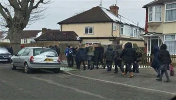 Học sinh sơ tán khỏi một trường học. (Nguồn: Mirror)