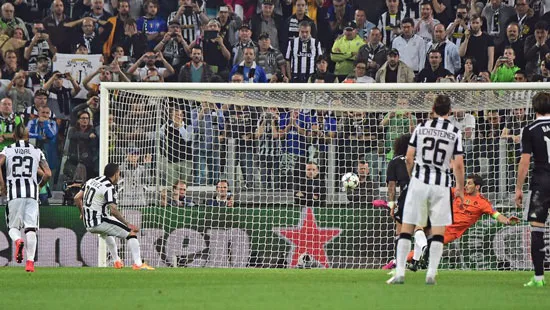 Tevez đánh bại thủ môn Buffon trên chấm 11 mét.