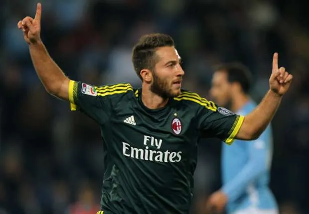 Andrea Bertolacci ăn mừng bàn thắng mở tỷ số cho AC Milan ở phút 25.