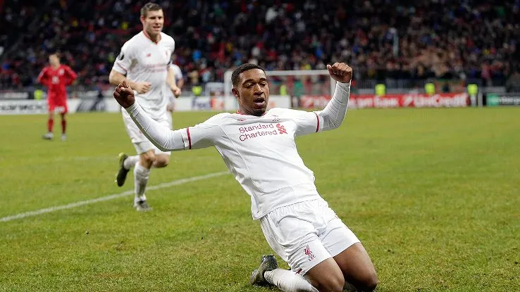 Jordon Ibe ăn mừng bàn thắng mang về chiến thắng 1-0 cho Liverpool trên sân Rubin Kazan.