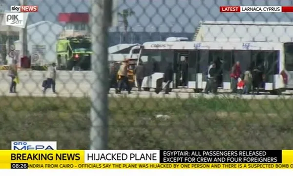 Theo The Guardian, một số hình ảnh trên truyền hình cho thấy, các hành khách đã rời máy bay và lên xe buýt của sân bay. Trong khi đó, theo cập nhật của hãng hàng không EgyptAir trên mạng xã hội Tweeter, một vài người vẫn còn ở lại trên máy bay bao gồm phi hành đoàn và 4 người nước ngoài.