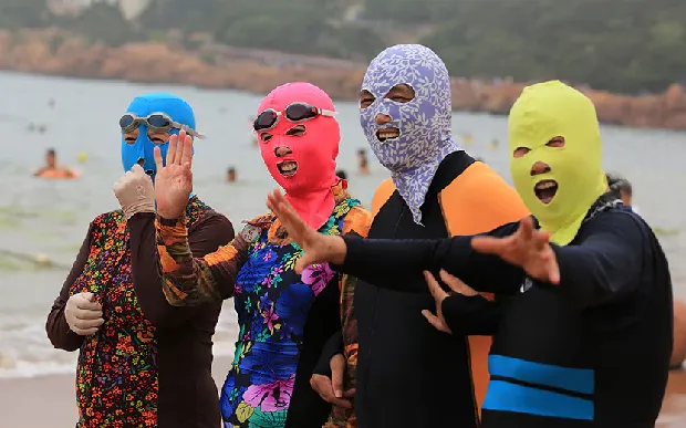 Những bộ đồ bơi facekini độc đáo tại Trung Quốc (Ảnh: Rex Features)