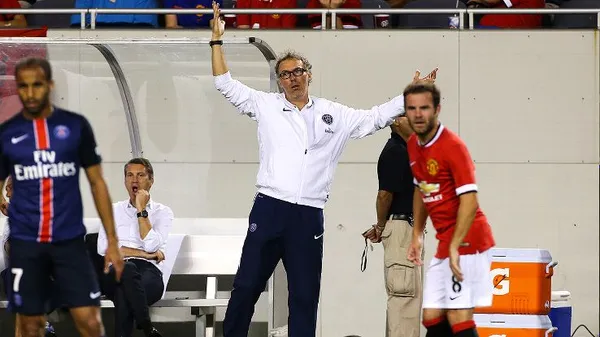 HLV Laurent Blanc phản ứng trong cuộc so tài giữa PSG và MU.