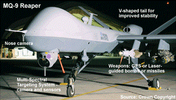 Theo BBC, máy bay không người lái MQ-9 Reaper đang đóng quân khu căn cứ mới. MQ-9 Reaper được quân đội sử dụng để giám sát và thả bom ở các khu vực quá nguy hiểm mà máy bay chiến đấu bình thường không thể tiếp cận.