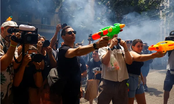 Người biểu tình sử dụng súng nước phản đối du lịch tại Barcelona, ​​Tây Ban Nha vào ngày 15/6/2025 - Ảnh: Reuters