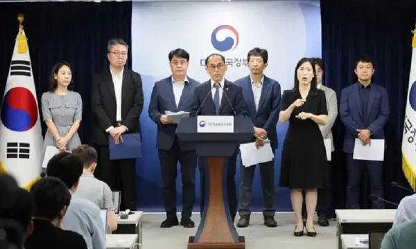 Chủ tịch Ủy ban Bảo vệ Thông tin Cá nhân Ko Hak-soo phát biểu tại buổi họp báo về quyết định phạt SK Telecom - Ảnh: YONHAP